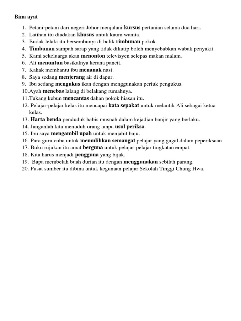 Bina Ayat Latihan 5 Bengkel Memartabatkan Bahasa Melayu Youtube