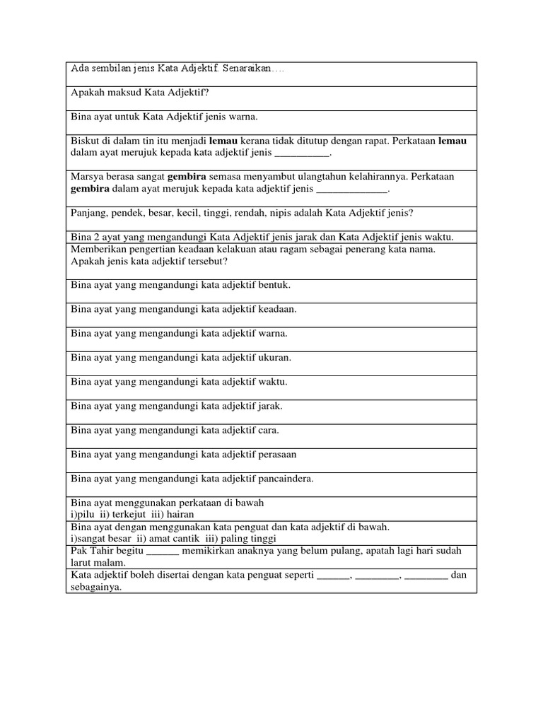 Bina Ayat Contoh Adjektif Untuk Malam